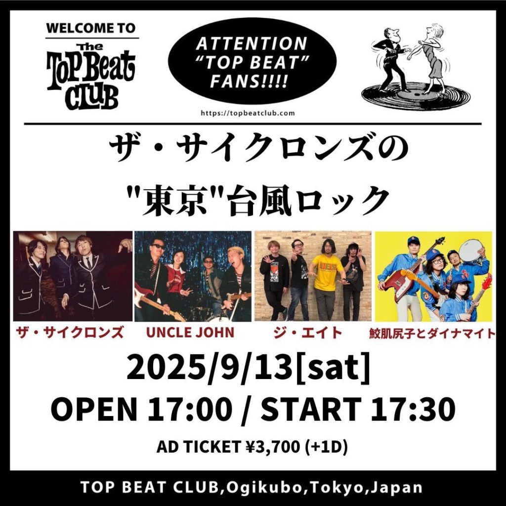 2025年9月13日(土)荻窪 TOP BEAT CLUB『ザ・サイクロンズの”東京”台風ロック』